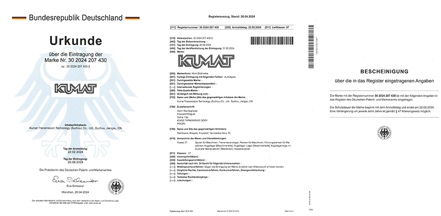KUMAT 商標證書 德國7類-有效期至2034.2.22